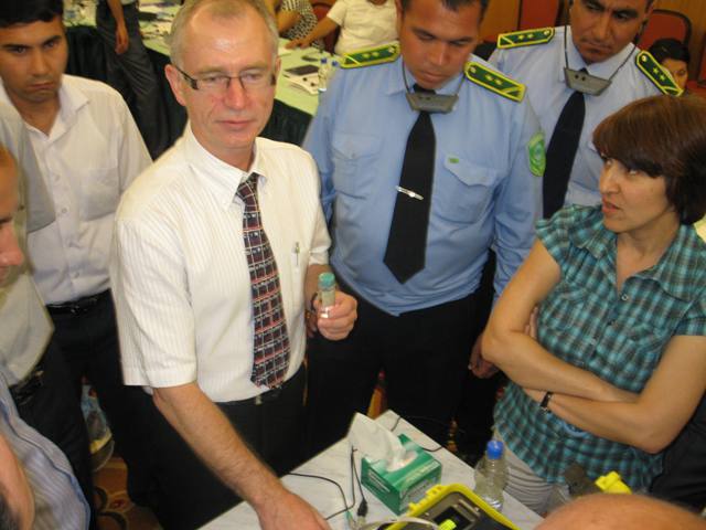 Instruction at an OSCE-sponsored training course on identifying drug precursors in Ashgabat, Turkmenistan, 18 June 2009.