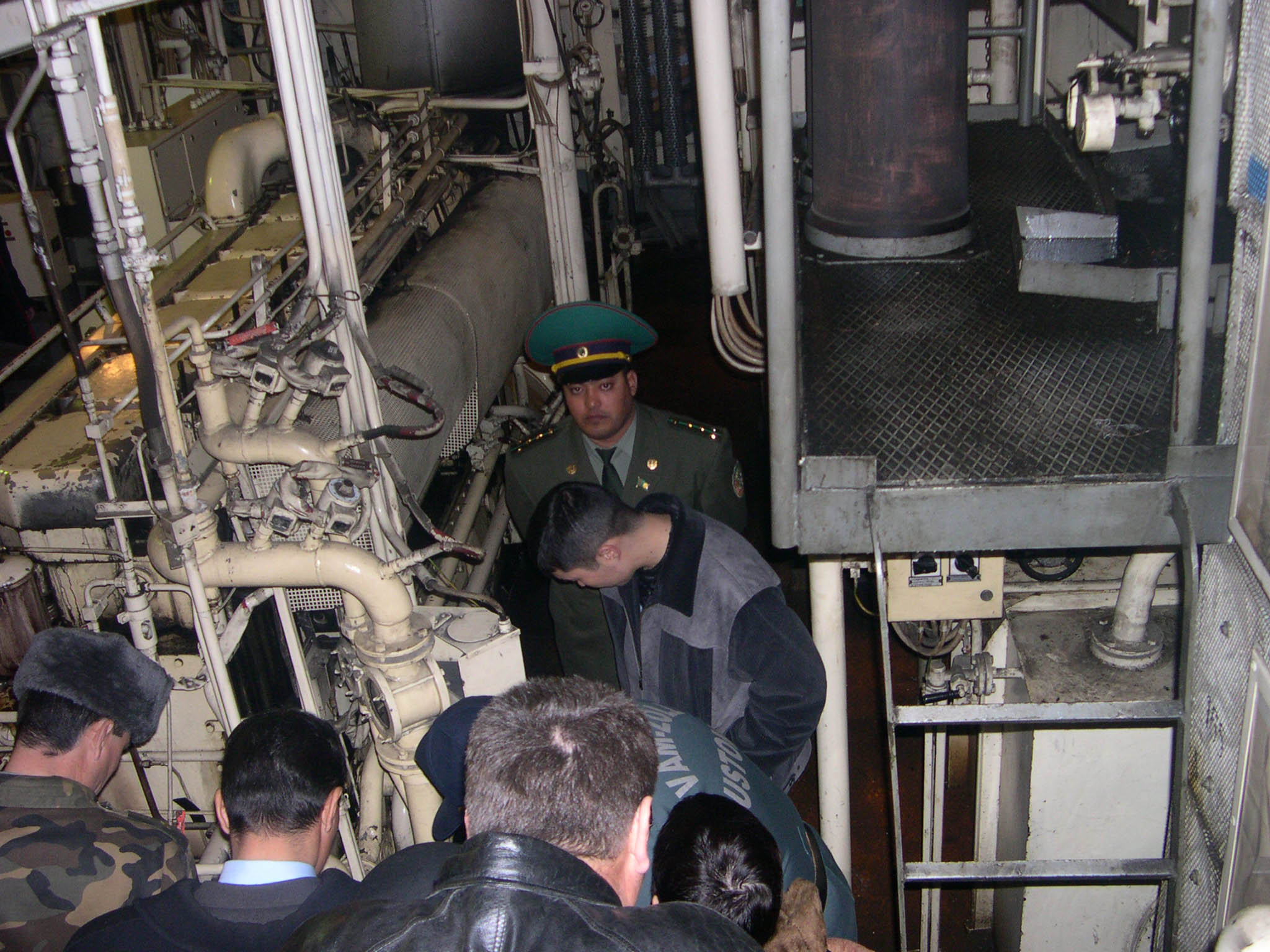 Searching for drugs in the engine room, part of a training course on drug interdiction in Turkmenbashy sea port, supported by the OSCE Centre in Ashgabat in February 2006.