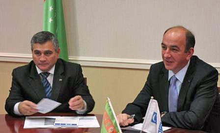 Kasymguly Babayev (l), Deputy Chairperson of Turkmenistan's Mejlis (Parliament) and Ambassador Arsim Zekolli, Head of the OSCE Centre in Ashgabat, address participants at a course in legislative drafting skills at the Mejlis, Ashgabat, 27 August 2010.