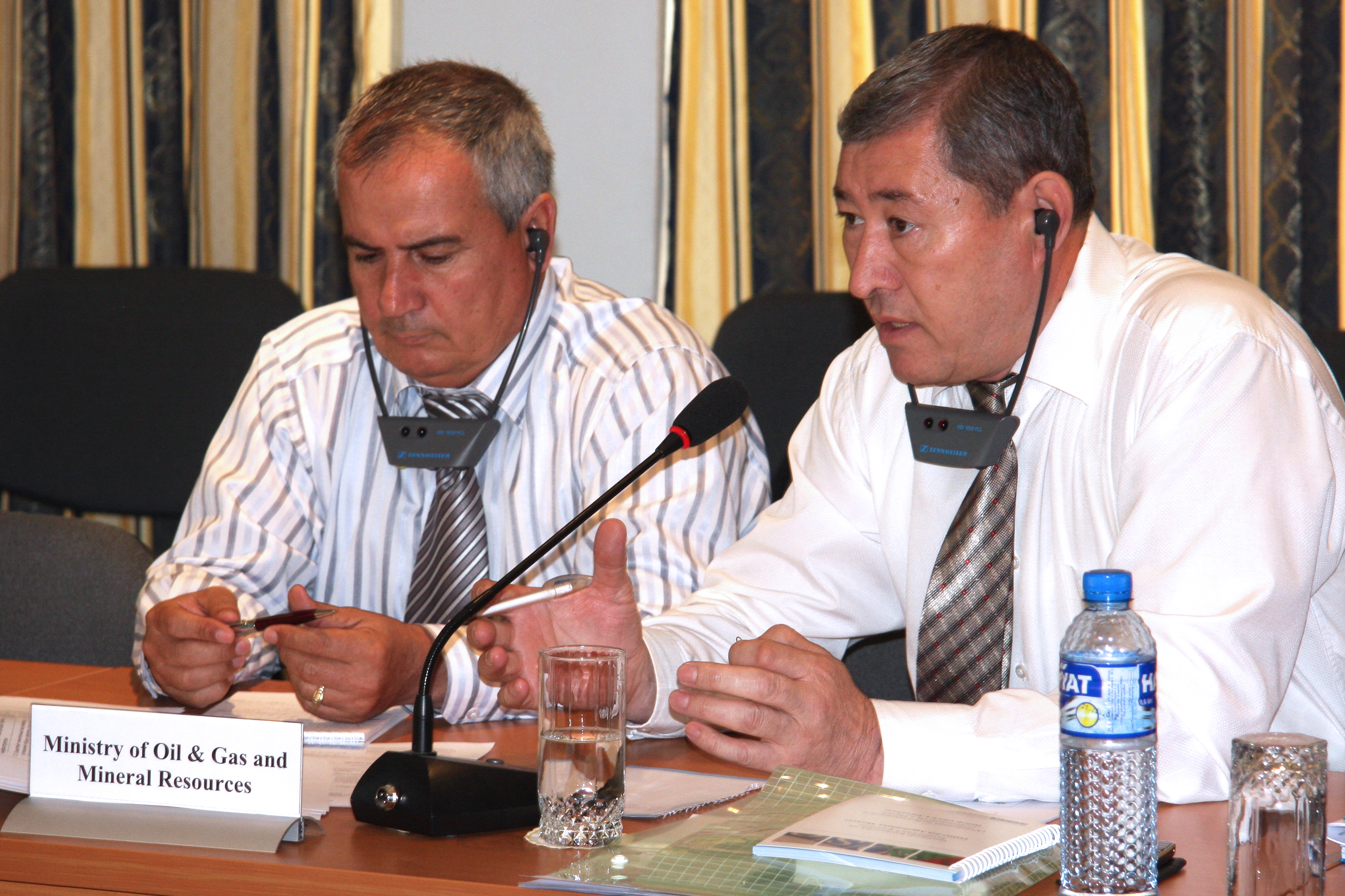 Participants give their views during an OSCE-organized workshop on cross-border gas trading, Ashgabat, 31 May 2012.