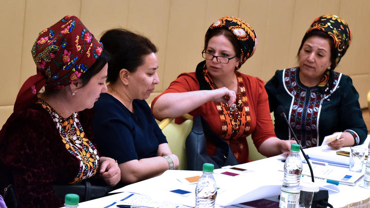 Participants during the interactive group work held as part of the OSCE-supported seminar on international standards of broadcasting regulation and new models of broadcasting, Ashgabat, 21 May 2018.