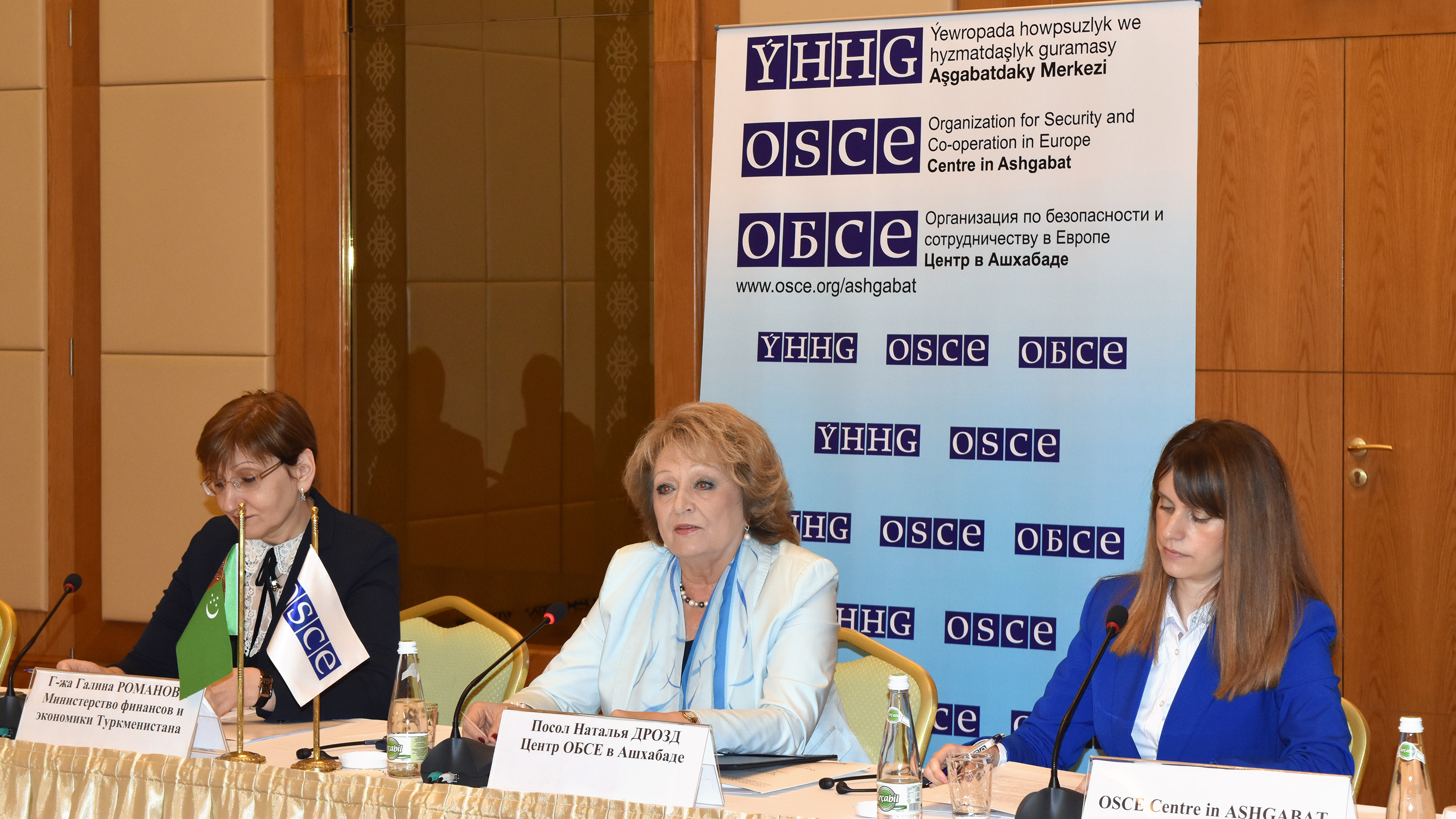 Natalya Drozd, Head of the OSCE Centre in Ashgabat, addresses participants of the OSCE-organized regional seminar “Towards regional economic connectivity – national mechanisms for trade and transport facilitation”, Ashgabat, 20 May 2019.