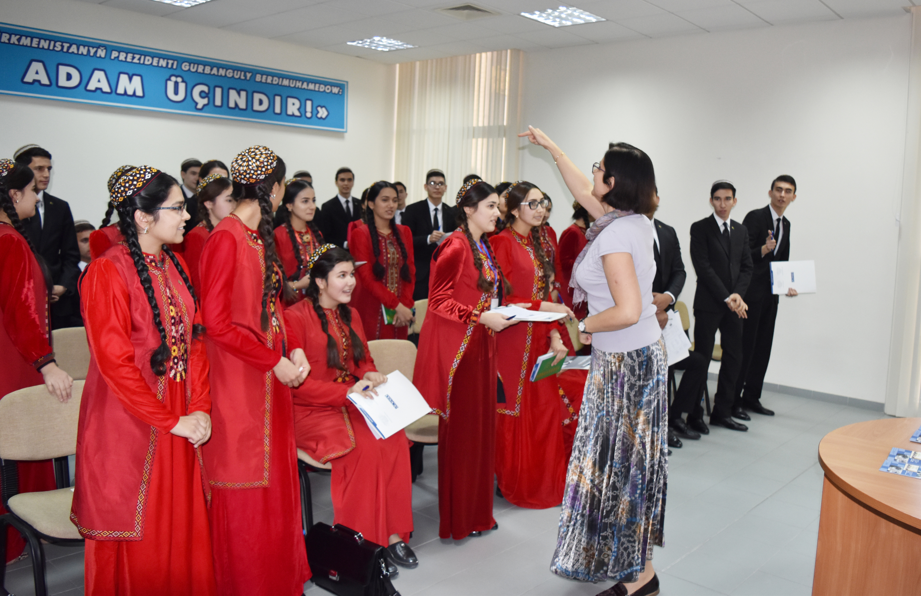 Rasa Ostrauskaite, former OSCE Co-ordinator of Activities to Address Transnational Threats, leads an ice-breaking exercise at the beginning of the second day of the OSCE organized course on the structure, principles and values of the Organization for Security and Co-operation in Europe, 6 November 2019.