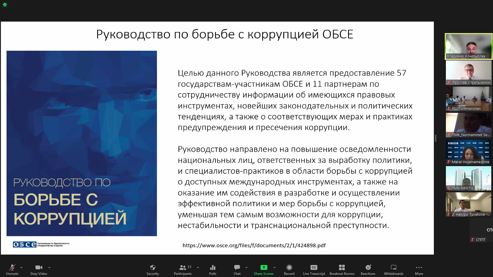 Presentation by an international expert from Ukraine at a seminar in Ashgabat on best practices in combating and preventing corruption, 23 June 2022.