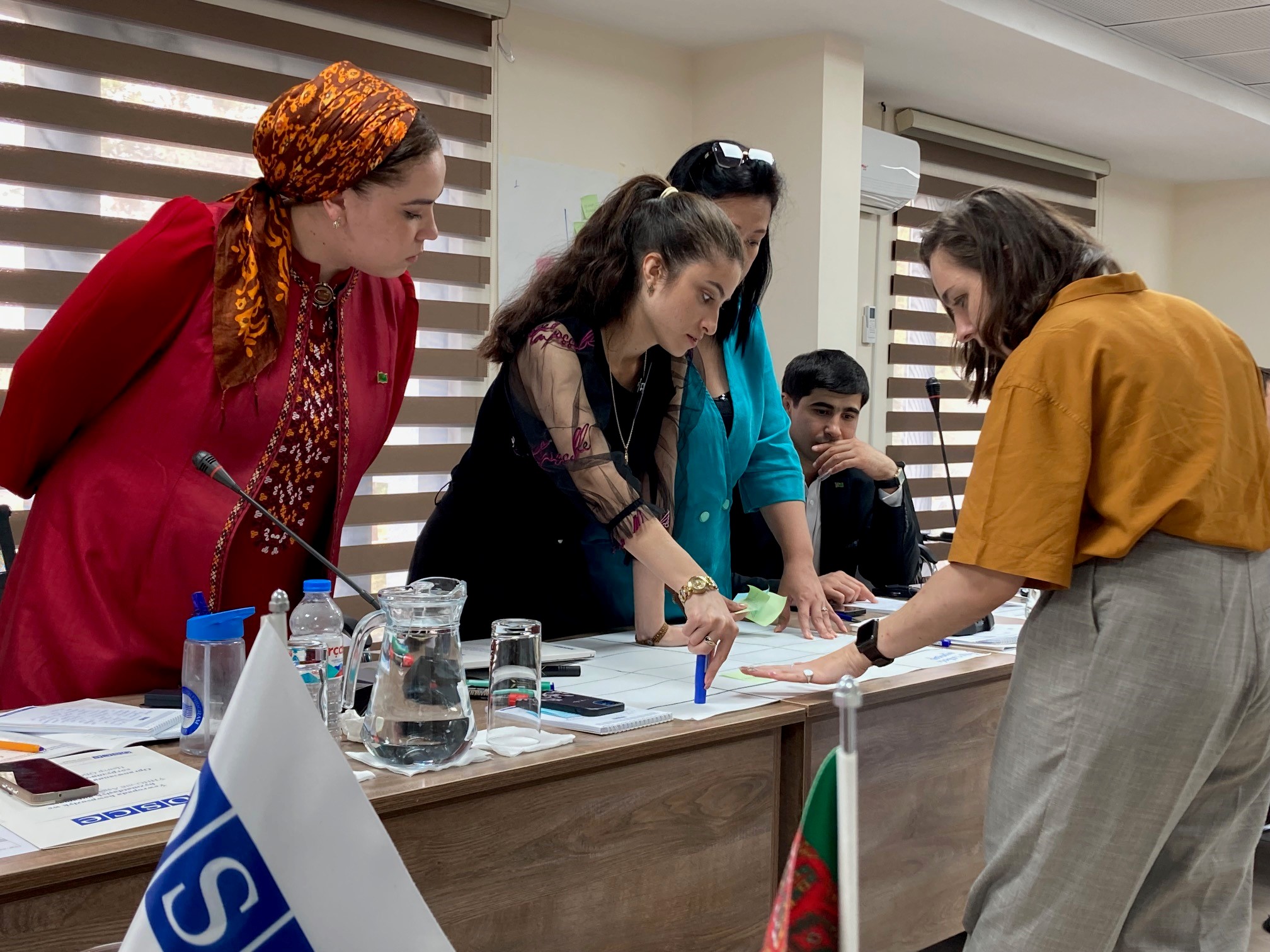 Participants during a practical exercise held as part of an OSCE-organized training course on media and information literacy in preventing and countering violent extremism and radicalization that lead to terrorism, Ashgabat, 25 September 2025, OSCE