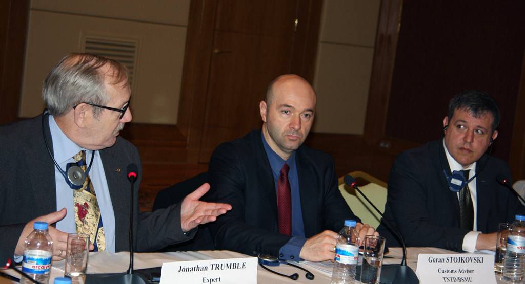 Международный эксперт Джонатан Трамбл выступает на открытии дискуссии за “круглым столом”, организованной ОБСЕ с целью оценки потребностей сотрудников погранслужбы Туркменистана в вопросах совершенствования их профессионального потенциала в области патрулирования границ, 31 марта 2016 года, г.