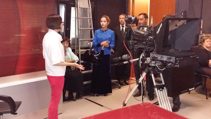 Media representatives from Turkmenistan visit a Latvian Public Service Television studio during an OSCE-organized study visit on media reform in Riga, 21 June 2016.
