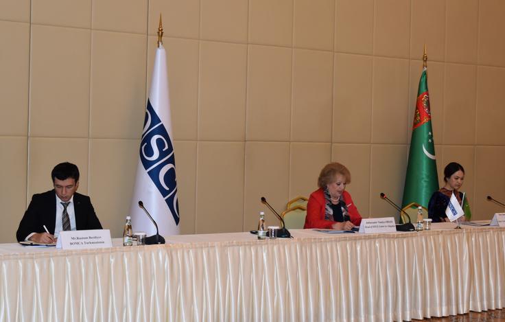 Наталья Дрозд, глава Центра ОБСЕ в Ашхабаде, выступает с приветственной речью на открытии организованного ОБСЕ онлайн-тренинга по развитию трансграничной торговли и транзитного потенциала, Ашхабад, 27 мая 2020 года.