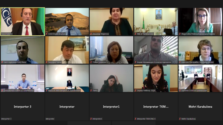 Участники организованного ОБСЕ двухдневного онлайн-семинара по предотвращению и криминализации домашнего насилия в Туркменистане, 7 сентября 2021 года.