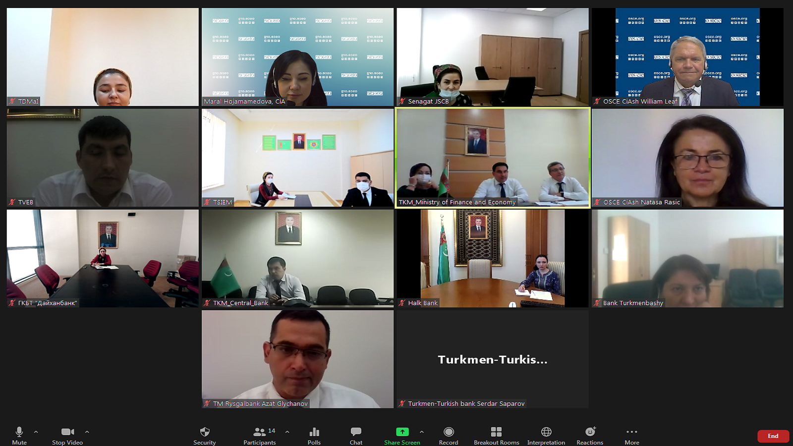 Участники семинара по продвижению передового опыта в развитии рынка капитала в Туркменистане, 15-сентября 2021 года.