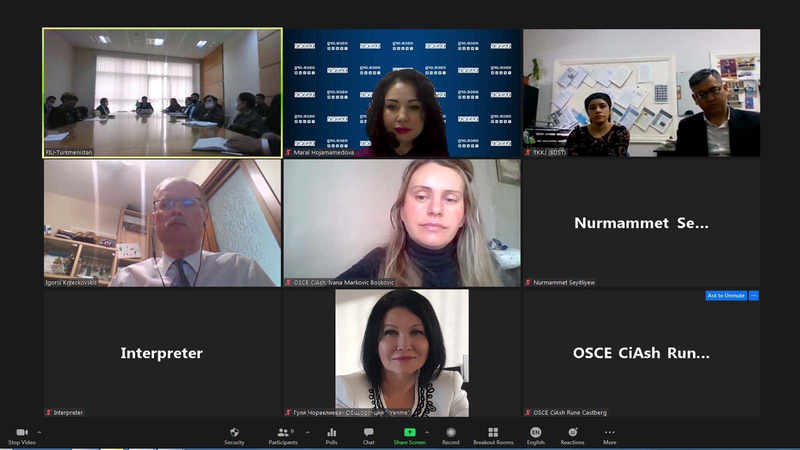 Открытие организованного ОБСЕ онлайн-семинара о роли некоммерческих организаций в борьбе с отмыванием денег и финансированием терроризма в Туркменистане, Ашхабад, 29 марта 2022 года. (ОБСЕ)