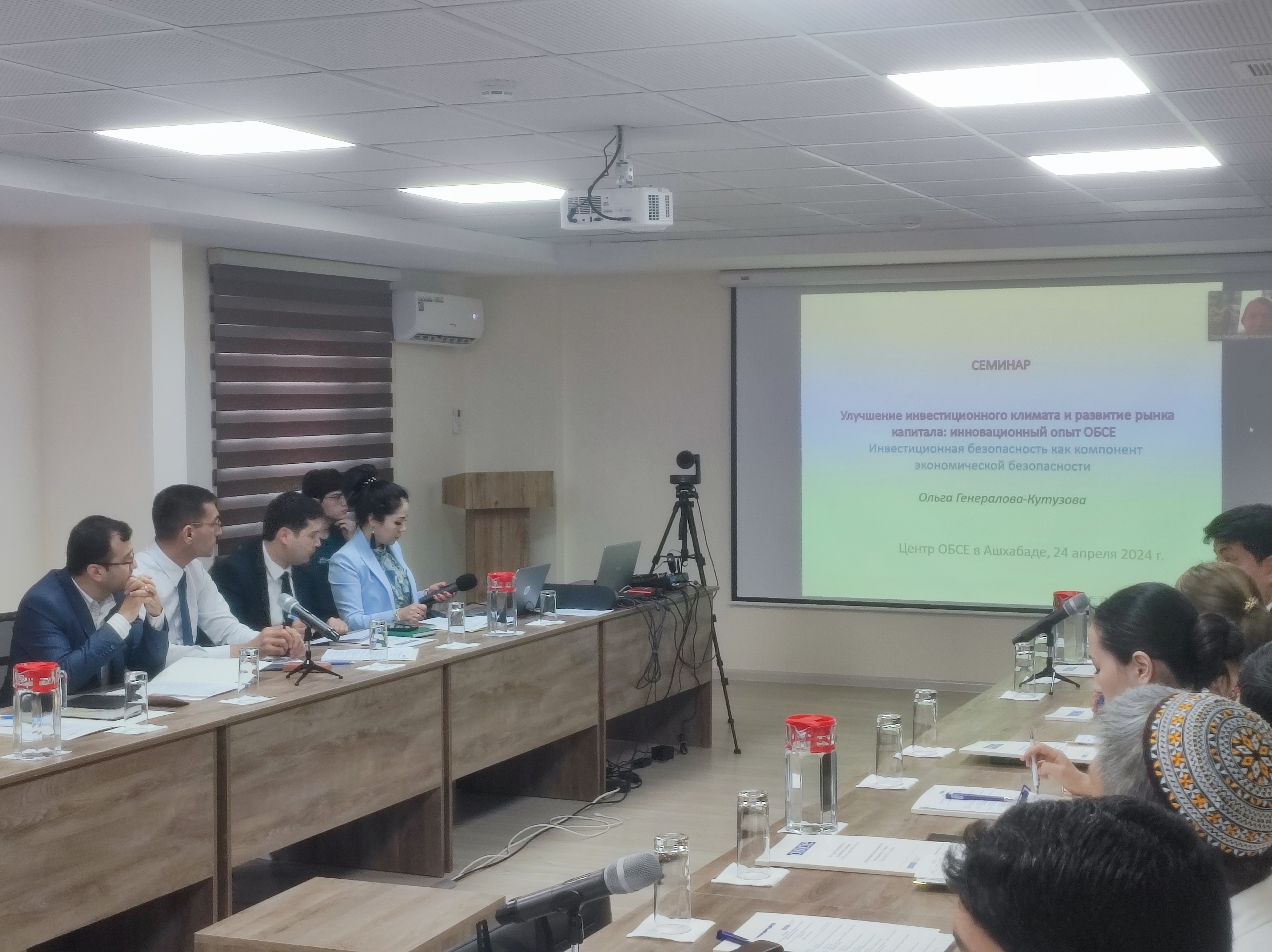 Участники во время организованного ОБСЕ семинара по улучшению инвестиционного климата и развития рынка капитала, Ашхабад, 24 апреля 2024 года
