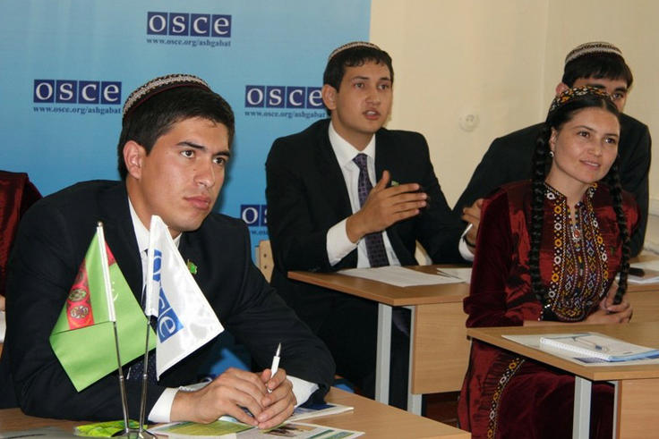 Journalism students take part in a lecture series on contemporary global journalism organized by the OSCE Centre at the Institute for International Relations, Ashgabat, 23 December 2010.